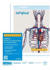 Corpus est un programme transmédia comprenant un site internet et un serious game pour smartphones sur le corps humain, la promotion de la santé et la recherche bio-médicale. Grâce à une interface 3D temps réel, plus de 100 vidéos téléchargeables et des pistes d’exploitation pédagogique, Corpus vous aide à comprendre le corps humain. A la fois outil de compréhension, d’éducation et d’information sur les grandes avancées scientifiques, ce site web s’adresse à tous les publics. Il est conçu pour les enseignants de SVT du collège et du lycée, leurs élèves, les parents d’élèves, les personnels de santé et les médiateurs de culture scientifique. A destination des enseignants, un « espace profs » donne également accès à des scénarios pédagogiques classés par niveau scolaire ou par thèmes de programme.